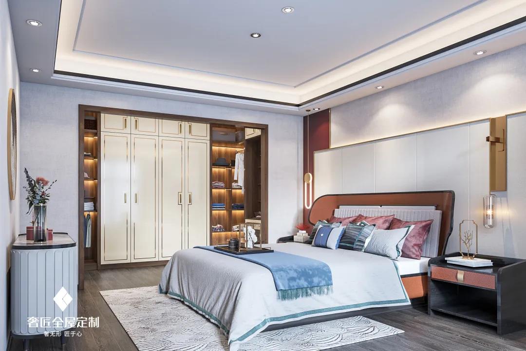 臥室,遠(yuǎn)離浮華,超然脫俗。山水畫作與簡(jiǎn)雅大方的家具相映成景,傳統(tǒng)文化與現(xiàn)代設(shè)計(jì)交織相融,奢華而不張揚(yáng),內(nèi)斂而不失溫馨。