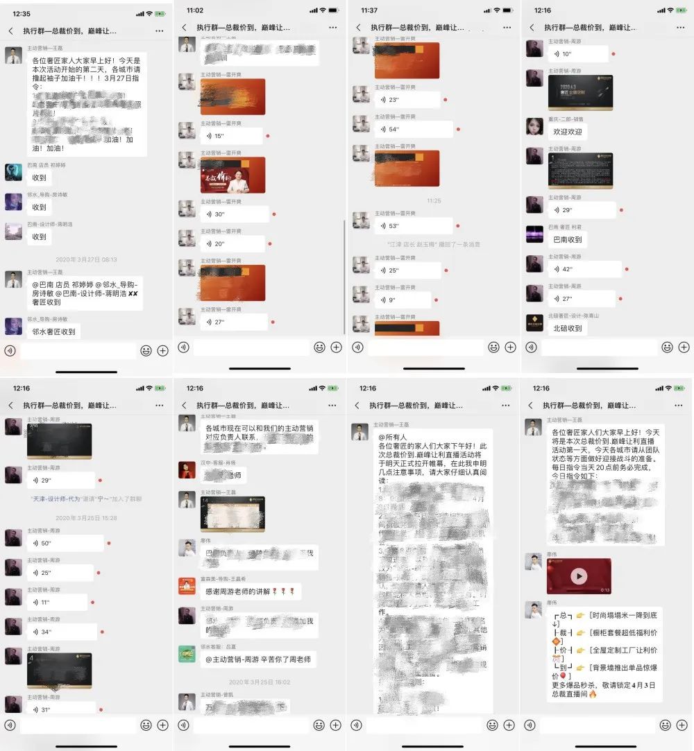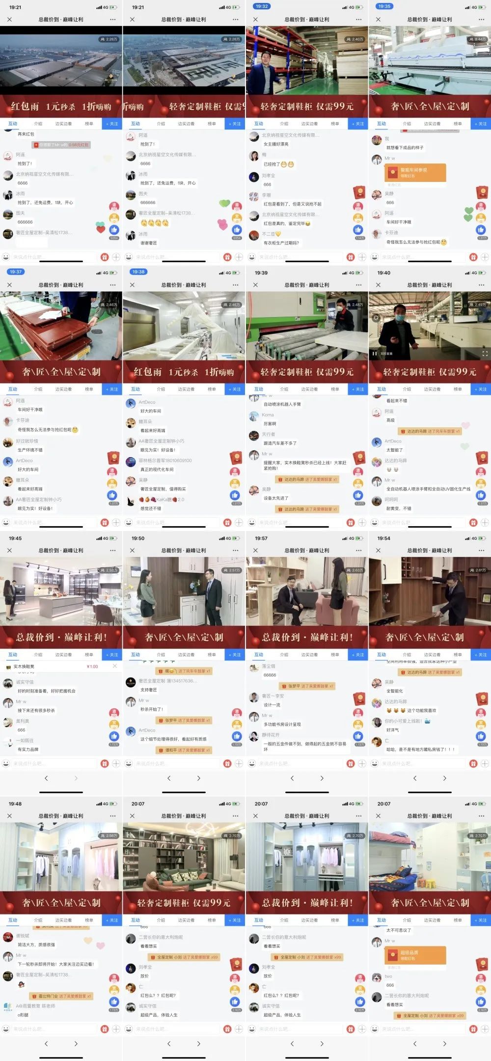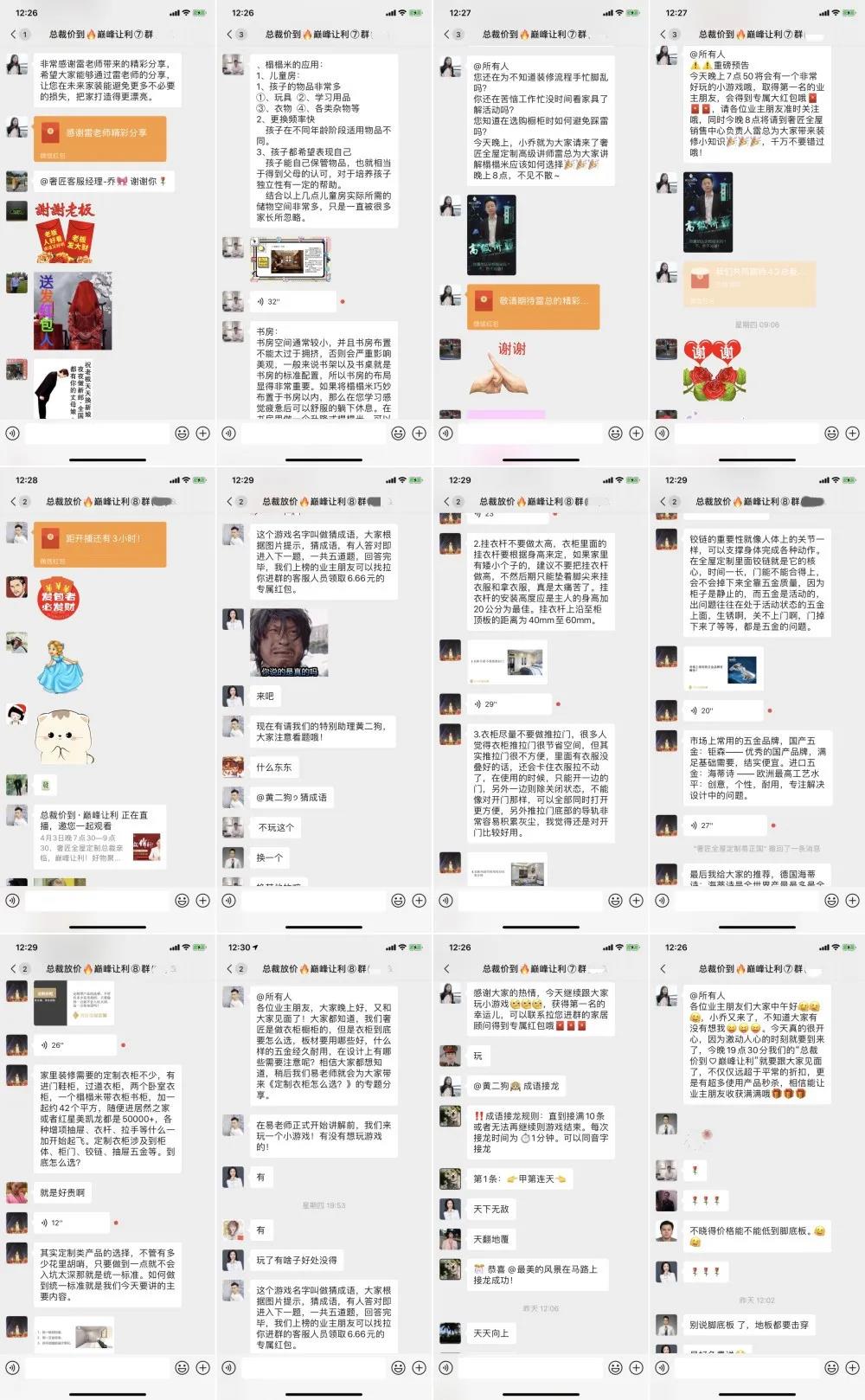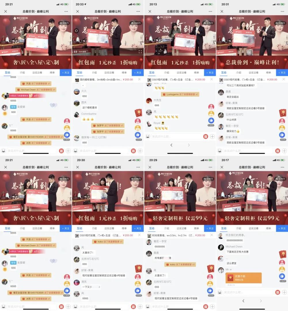 本次直播利用微信社群,提前預(yù)熱。預(yù)熱期間,奢匠邀請家裝行業(yè)專家于每晚8點為客戶講解裝修知識、解答裝修問題,奢匠客服人員預(yù)熱期間持續(xù)與群內(nèi)客戶互動,不定時送上紅包福利,獲得群內(nèi)客戶一致好評,使終端消費者對奢匠更有信心。