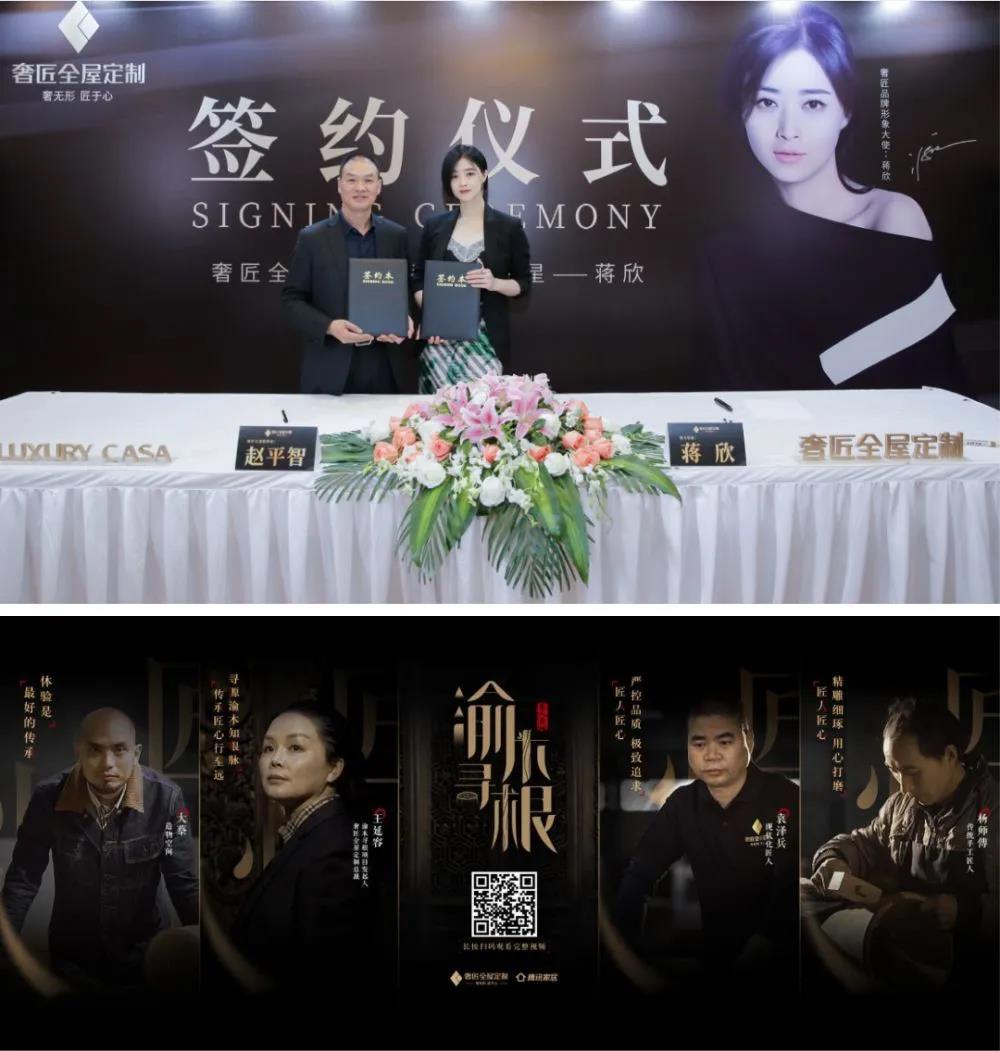 為讓品牌形成更好的營銷導(dǎo)向,奢匠不僅簽約著名影星【蔣欣】為品牌形象大使。同時(shí)深耕品牌文化,與騰訊家居聯(lián)合策劃推出“匠人匠心”系列主題欄目《渝木尋根》,為奢匠品牌賦予“匠心”之魂。