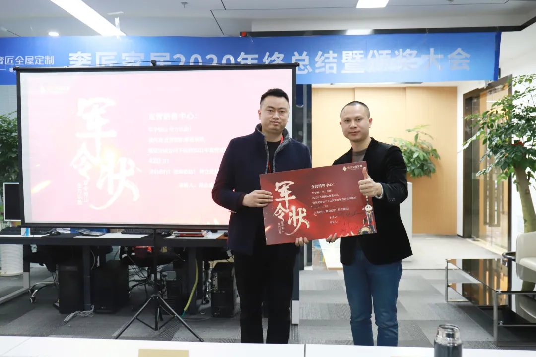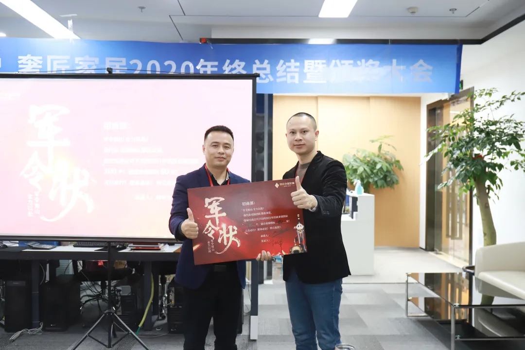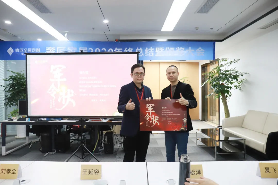 2021年1月30日,奢匠2020年終總結(jié)暨頒獎(jiǎng)大會(huì)于奢匠營銷中心舉行。奢匠家居總裁王延容、總經(jīng)理蔣松澤、營銷副總劉孝全、各部門負(fù)責(zé)人及營銷中心全體人員參加了此次會(huì)議。