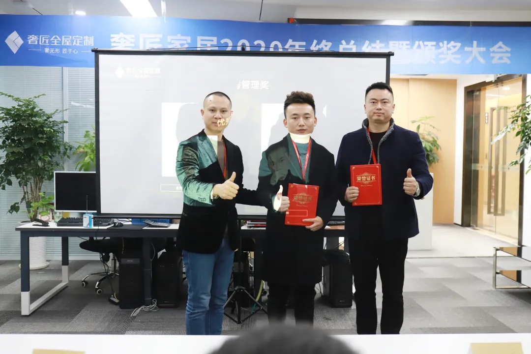 總結(jié)會(huì)議結(jié)束后,進(jìn)入最精彩的表彰環(huán)節(jié)——奢匠年度頒獎(jiǎng)大會(huì)。奢匠自成立以來,全體奢匠人互勵(lì)共勉、齊心協(xié)力,共同促進(jìn)品牌的發(fā)展。在此過程中涌現(xiàn)出一批優(yōu)秀的人才,他們開拓進(jìn)取、無私奉獻(xiàn),不斷在工作中挑戰(zhàn)自我,用自己的行為帶動(dòng)他人,讓奢匠在業(yè)界熠熠生輝!