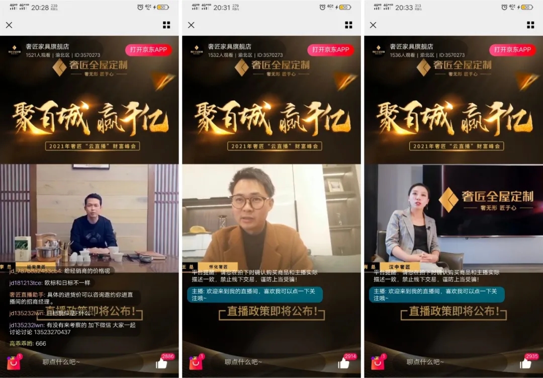 財(cái)富峰會第二環(huán)節(jié),眾多家居行業(yè)大咖現(xiàn)身奢匠直播間,為奢匠“云直播”財(cái)富峰會帶來祝福。