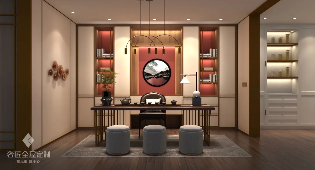 新中式風(fēng)格是傳統(tǒng)中式元素與現(xiàn)代材質(zhì)的巧妙融合,在儒雅中式風(fēng)格家居的設(shè)計(jì)上,奢匠設(shè)計(jì)師將傳統(tǒng)線條與配色重新雕琢,呈現(xiàn)出清雅含蓄、端莊豐華的東方格調(diào)。