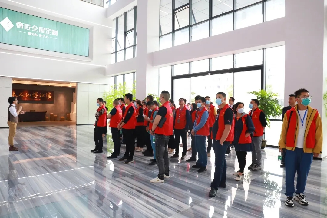 隨后,在研發(fā)部梁華波老師的帶領(lǐng)下,考察團(tuán)來(lái)到奢匠5000㎡旗艦展廳,從木文化博物館到工法展示館,從品牌科技館到樣品展廳,從四大風(fēng)格家居到八大空間系統(tǒng),在此,考察團(tuán)更直觀地了解奢匠品牌發(fā)展脈絡(luò),零距離鑒證奢匠顏、質(zhì)俱佳的產(chǎn)品,全方位感受奢匠魅力。