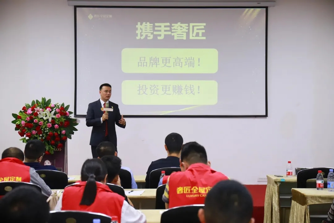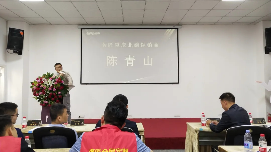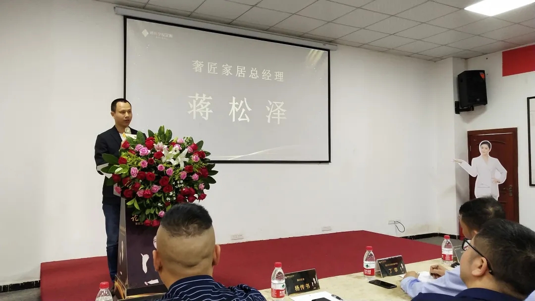 隨后,來(lái)自重慶北碚的經(jīng)銷(xiāo)商陳總在會(huì)上為我們講述了他與奢匠的故事。他說(shuō):“之所以選擇奢匠,是奢匠無(wú)論從工藝,產(chǎn)品設(shè)計(jì)還是給到經(jīng)銷(xiāo)商的保障,都超越其他品牌。所以,選擇奢匠,就會(huì)用心為奢匠產(chǎn)品背書(shū),為選擇我們的客戶提供更專(zhuān)業(yè)的產(chǎn)品和服務(wù)。