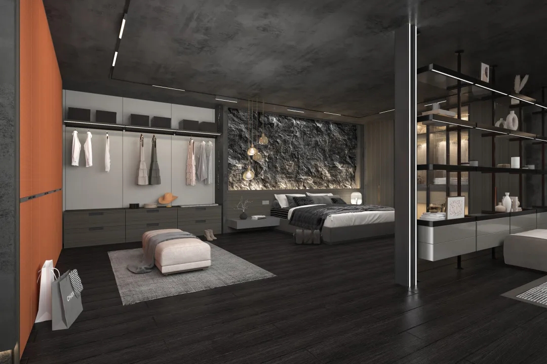 阿爾法系列,采用進口板式與國際流行花色互相搭配,呈現(xiàn)空間優(yōu)雅奢感。運用結構感強烈的墻面設計,凸顯極簡美感,探尋無拘束生活潛能。