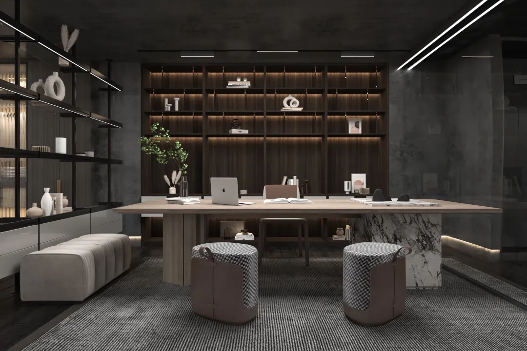 簡潔純粹的書房空間,以板式與煙熏橡木飾面有效結合,給人沉穩(wěn)之余,營造一股濃厚的書香氣息。局部經典黑白色調的運用,兼具傳統(tǒng)與現(xiàn)代風格,營造簡單高級的私密空間。