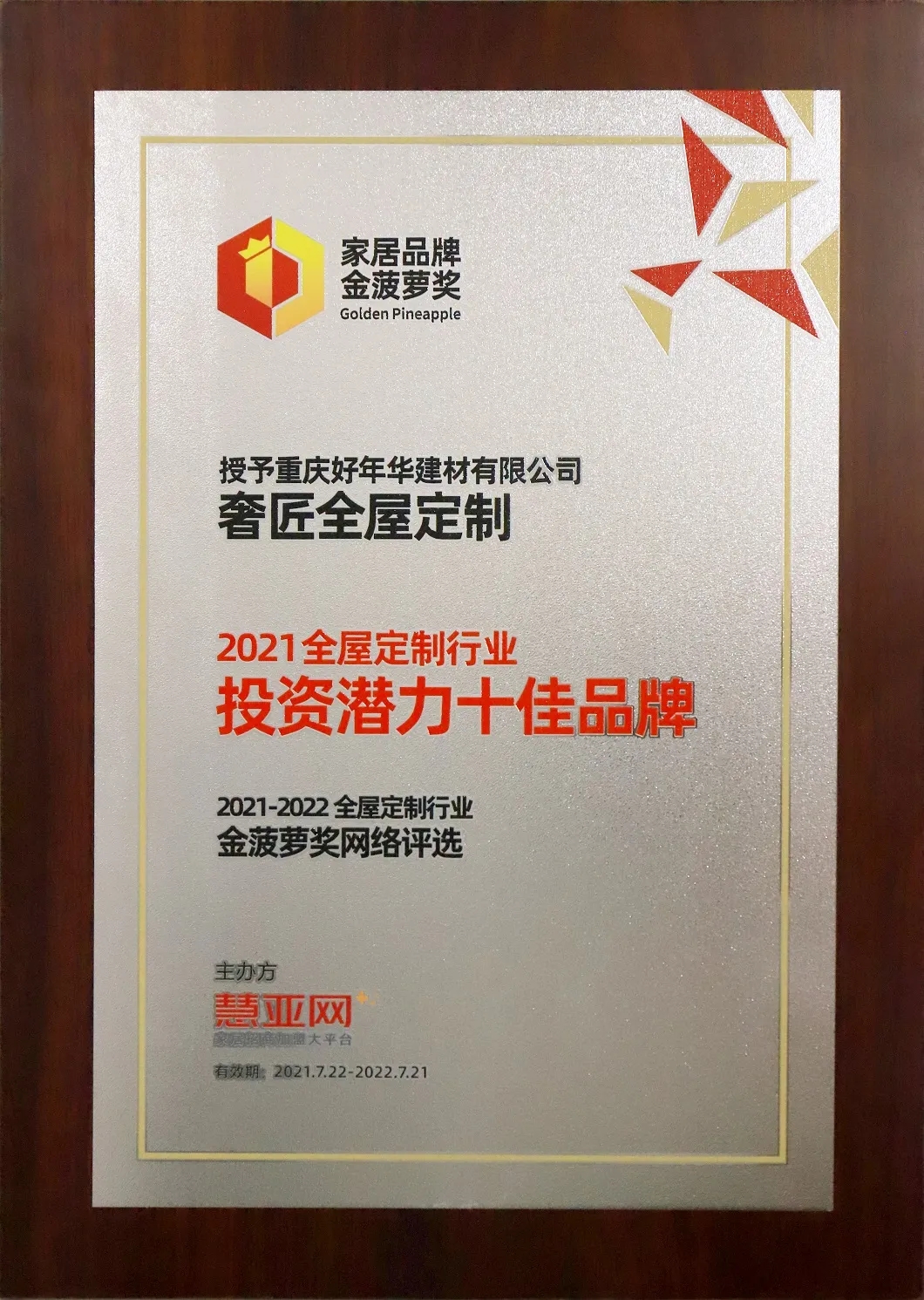 ▲奢匠榮獲“2021全屋定制行業(yè)投資潛力十佳品牌”