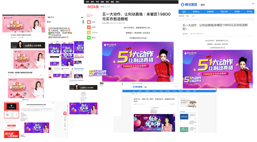 同時(shí)全面構(gòu)筑品牌立體化傳播矩陣,與騰訊家居、慧亞家居熱線(xiàn)、中華衣柜網(wǎng)等權(quán)威媒體平臺(tái)達(dá)成戰(zhàn)略合作。打造強(qiáng)有力的品牌勢(shì)能。