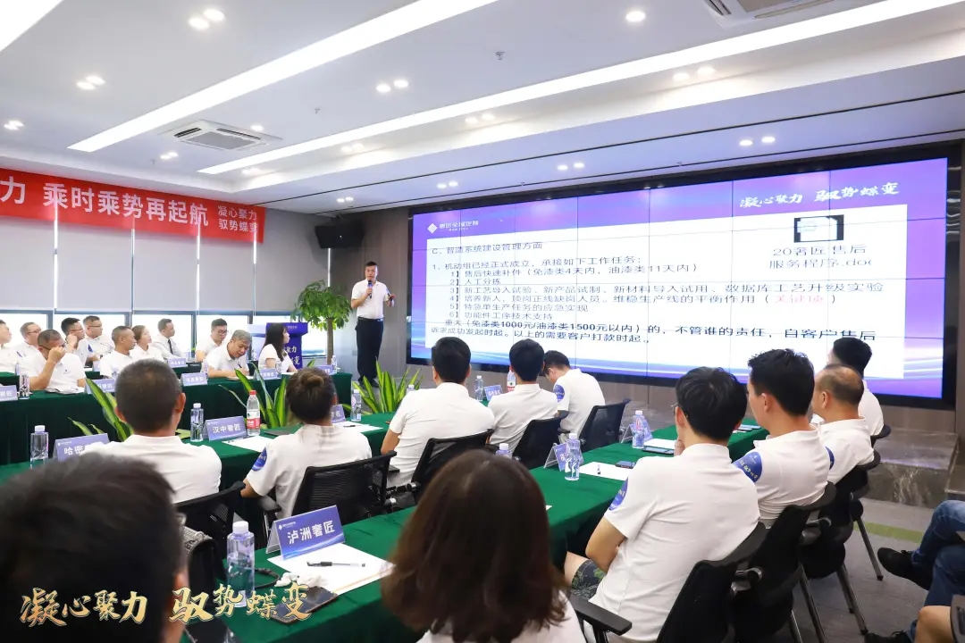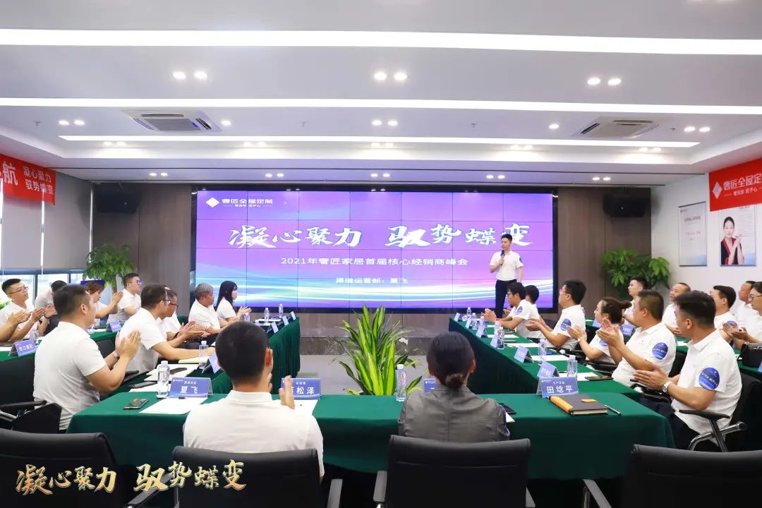 2021年9月23日,“凝心聚力,馭勢蝶變”奢匠全屋定制首屆核心經(jīng)銷商峰會在營銷中心隆重召開,奢匠家居總裁王延容女士、總經(jīng)理蔣松澤先生及各職能部門負(fù)責(zé)人,以及來自全國的核心經(jīng)銷商們共同參與了此次會議,大家共謀發(fā)展良策,共商發(fā)展大計,為奢匠聚勢前行作詳細(xì)的戰(zhàn)略部署。