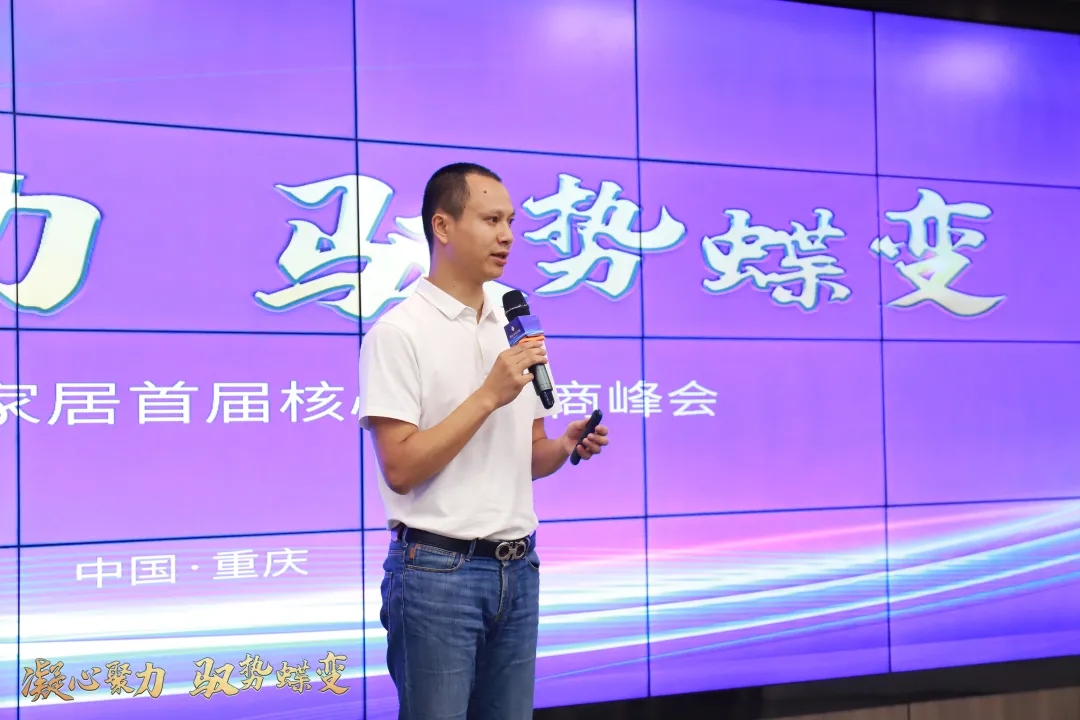 ▲奢匠家居渠道總監(jiān)—夏飛作渠道工作專題匯報