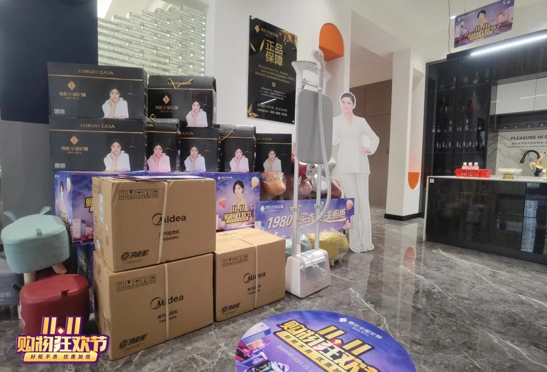 為了迎接雙11.11狂歡盛宴,奢匠全國終端門店的家人們拿出200%的熱情,精心籌備,周密布置,將門店布置的活力四射,讓進店消費者感受到熱力爆表的購物氛圍。同時,還為每位進店消費者準備了專享購物津貼,溫暖助力家居煥新!
