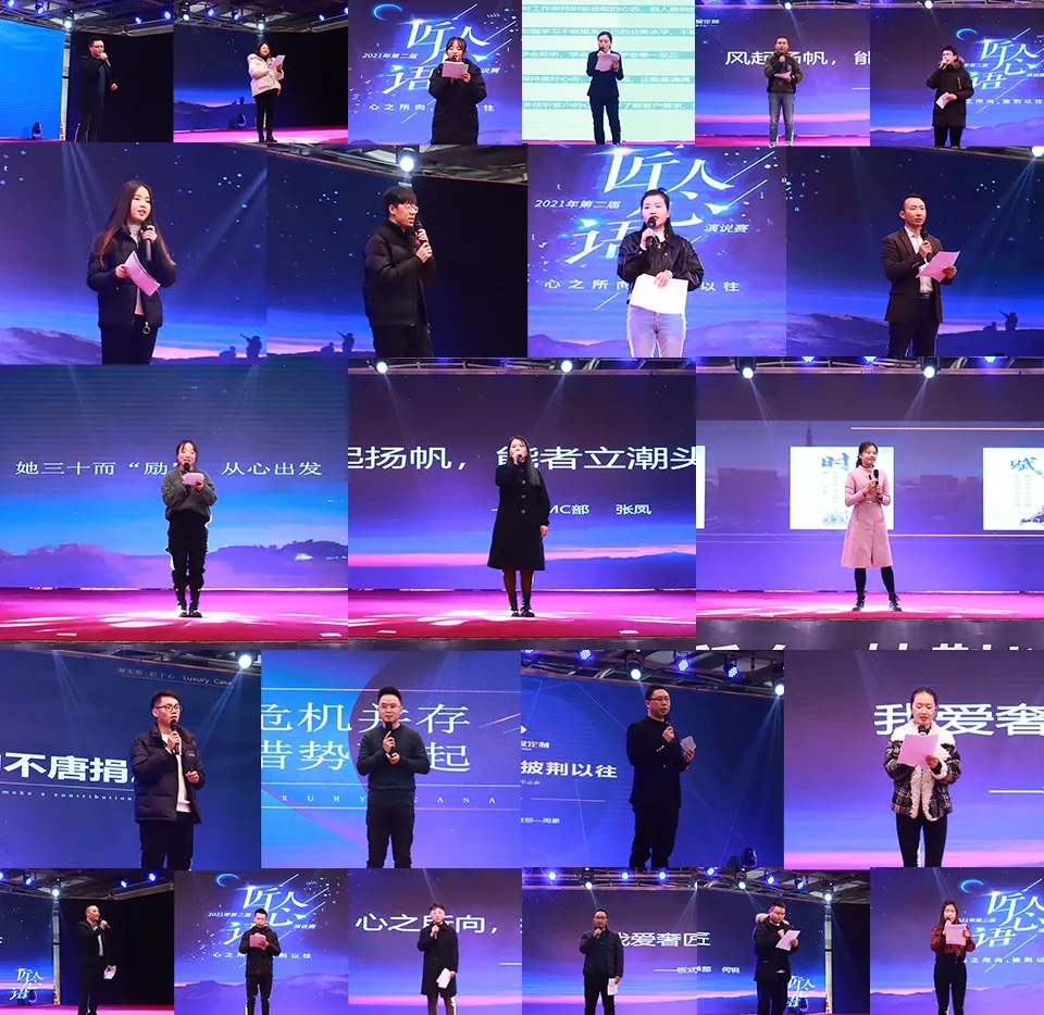 2021年11月23日,奢匠第二屆“匠人心語”演說大賽在重慶生產(chǎn)智造基地圓滿舉辦。本次大賽旨在為促進奢匠人才梯隊建設(shè),快速達成企業(yè)戰(zhàn)略目標(biāo);同時也為公司員工提供多元化的展示舞臺,傳遞企業(yè)陽光、奮進、專業(yè)、靠譜、堅持的核心價值觀,樹立共同目標(biāo)與理想,通過榜樣的力量鼓舞更多奢匠人努力前行。