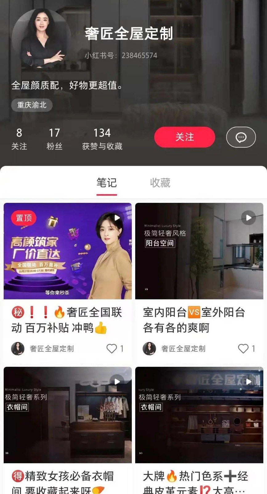 為深度向消費(fèi)者,行業(yè)及合作商傳遞品牌核心價(jià)值,傳遞品牌訴求、打造品牌形象,奢匠在一整年里面大力投入自媒體自媒體搭建,升級(jí)自媒體矩陣。新搭建“小紅書”平臺(tái)、邀請(qǐng)平臺(tái)KOL助力線下營(yíng)銷宣傳、持續(xù)運(yùn)作“抖音”、“視頻號(hào)”等短視頻自媒體平臺(tái)。旨在通過品牌進(jìn)行深度化傳播,對(duì)潛在目標(biāo)客群進(jìn)行精準(zhǔn)覆蓋,助力終端多渠道獲客,并不斷擴(kuò)大品牌影響力。
