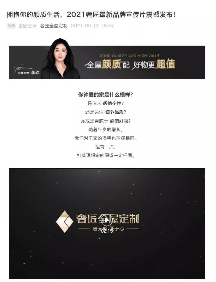 2021年奢匠全新宣傳片上線,全新展示奢匠“全屋顏質(zhì)配 好物更超值”的品牌新主張,同時(shí)根據(jù)市場(chǎng)趨勢(shì),升級(jí)8大空間產(chǎn)品系列圖,形成了以極簡(jiǎn)輕奢、流行現(xiàn)代、儒雅中式、經(jīng)典歐美4大風(fēng)格產(chǎn)品矩陣,為消費(fèi)者提供高品質(zhì)、多元化、健康環(huán)保的家居生活體驗(yàn)。