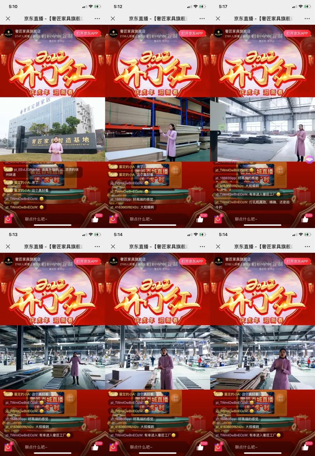 在參觀完時尚潮流的旗艦展廳后,兩位主持人用一段宣傳片帶領直播間觀眾一睹奢匠工廠實力,又現(xiàn)場連線奢匠商學院金牌講師—余舟,為大家在線近距離展示奢匠產品裁板、封邊、打孔、機雕造型、包覆、吸塑、檢驗、試裝、包裝的全過程,讓大家實地感受奢匠的生產規(guī)模和制造實力。