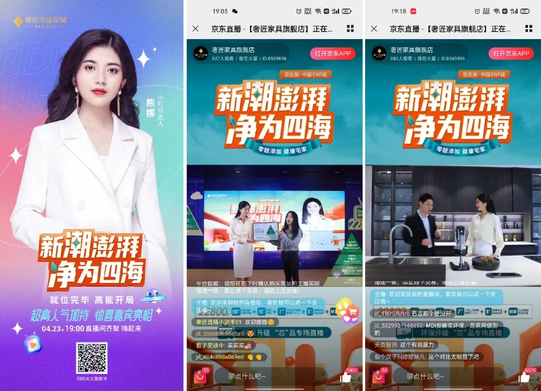 4月23日,大促活動邀請小紅書生活達人親臨奢匠城市展廳,開展線上直播活動,為大家?guī)韮?yōu)惠福利政策的同時以消費者的視角,近距離沉浸式體驗奢匠產(chǎn)品的魅力。