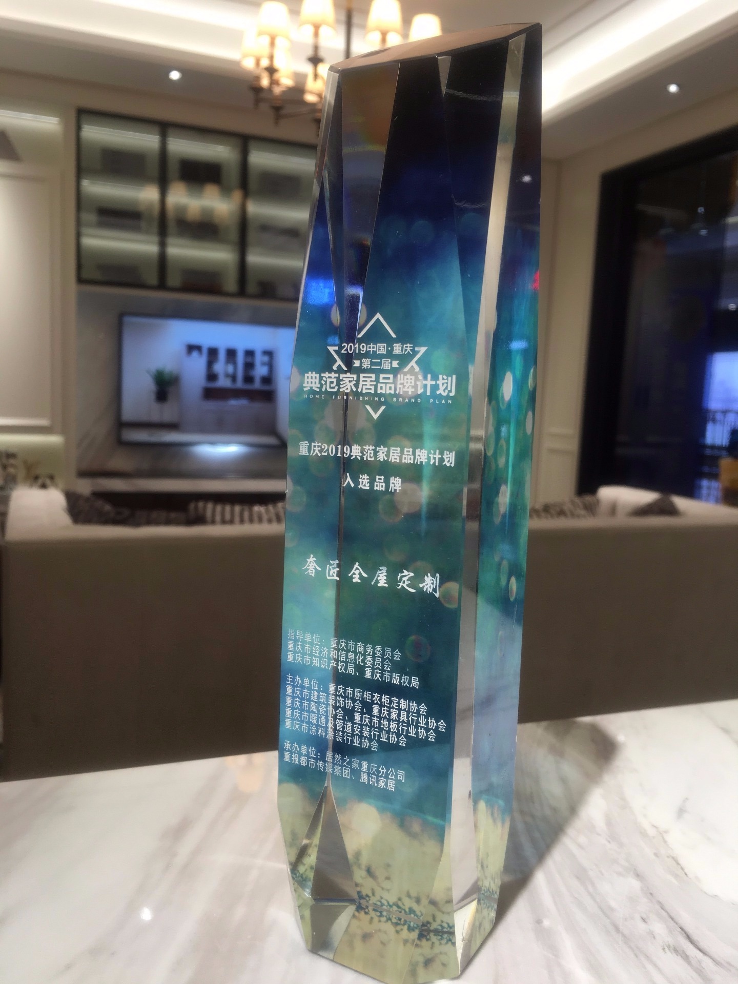 (奢匠全屋定制當(dāng)選典范家居品牌榮譽(yù)獎(jiǎng)杯)