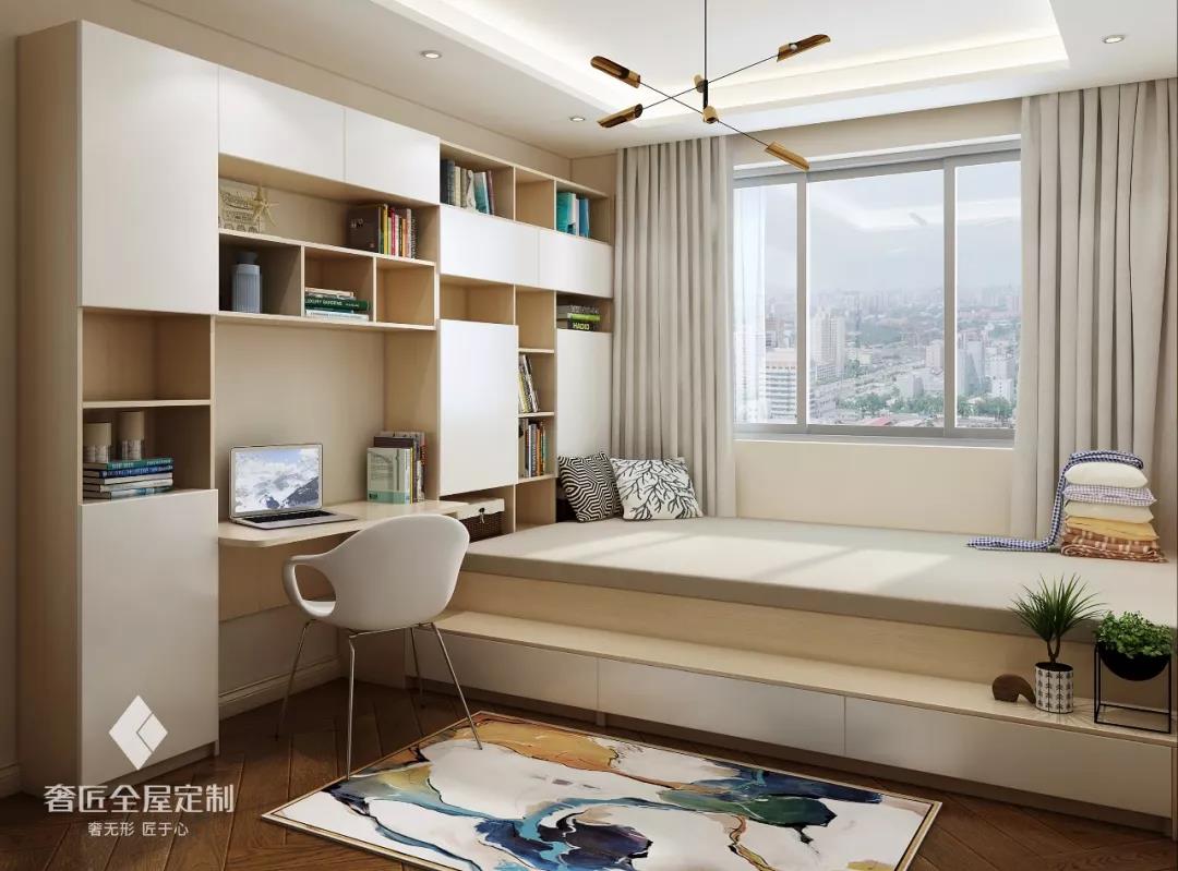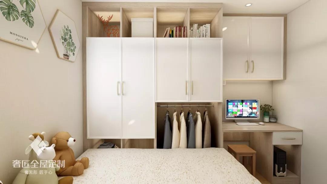 榻榻米上還可定制一個(gè)衣柜,既不會(huì)占用房間內(nèi)其他多余的空間,又能夠滿足衣物的存放問題,也使得整個(gè)房間看起來(lái)更加的井然有序、干凈整潔,卻不會(huì)顯得缺少什么。讓實(shí)用與美觀兼具。