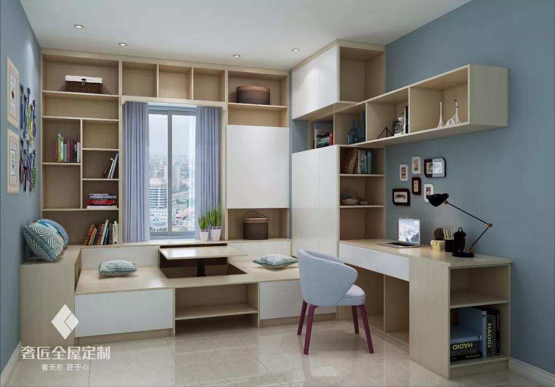 書房+榻榻米的設(shè)計(jì)可謂十分常見,在實(shí)現(xiàn)空間多功能化的同時(shí),也可最大化的利用空間,對(duì)于原本空間就不大的小戶型來(lái)說(shuō),這無(wú)疑是最好的選擇。