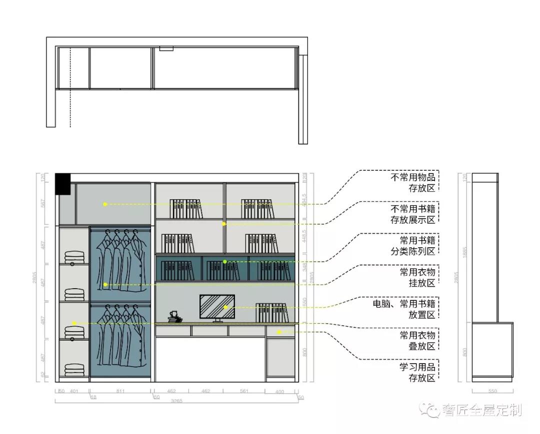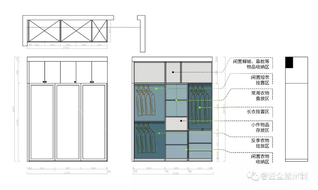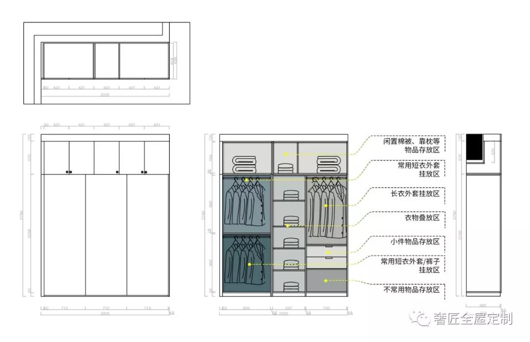 ·衣柜搭配頂柜,向上延伸儲物空間,存放閑置物品。