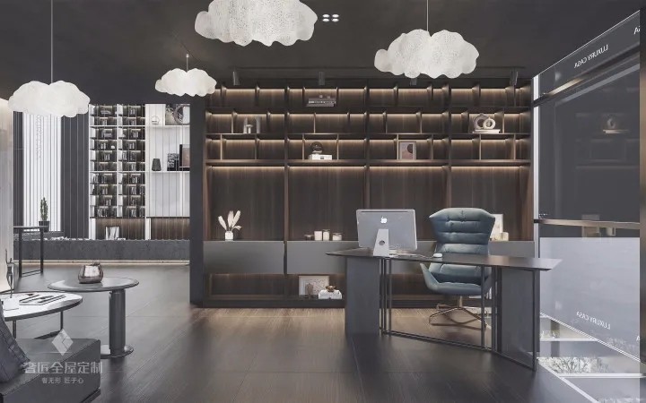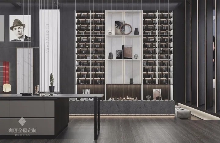 書房以沉穩(wěn)為主基調(diào)。整墻式的書柜,透明玻璃的陳列,兼具了功能、特色與美觀一體的設(shè)計(jì)理念。既有傳統(tǒng)書房的典雅感,又有現(xiàn)代書房的簡約風(fēng)。