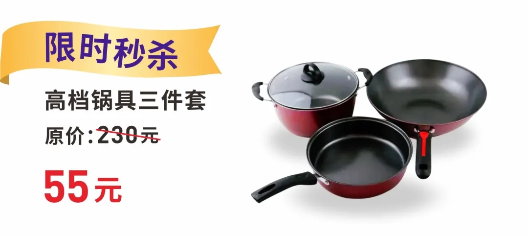 55元直播間限時(shí)秒殺價(jià)值230元高檔鍋具三件套