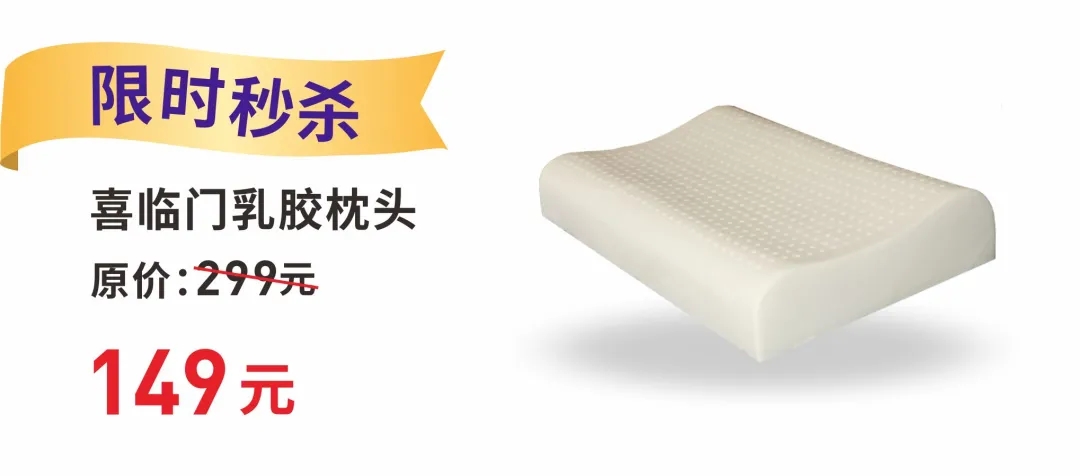 149元直播間限時(shí)秒殺價(jià)值299元喜臨門乳膠枕一個(gè)