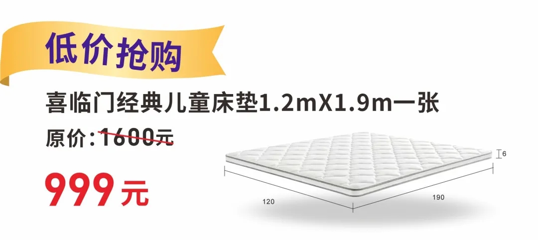 999元直播間低價(jià)搶購(gòu)價(jià)值1600元喜臨門1.2米兒童床墊一張。