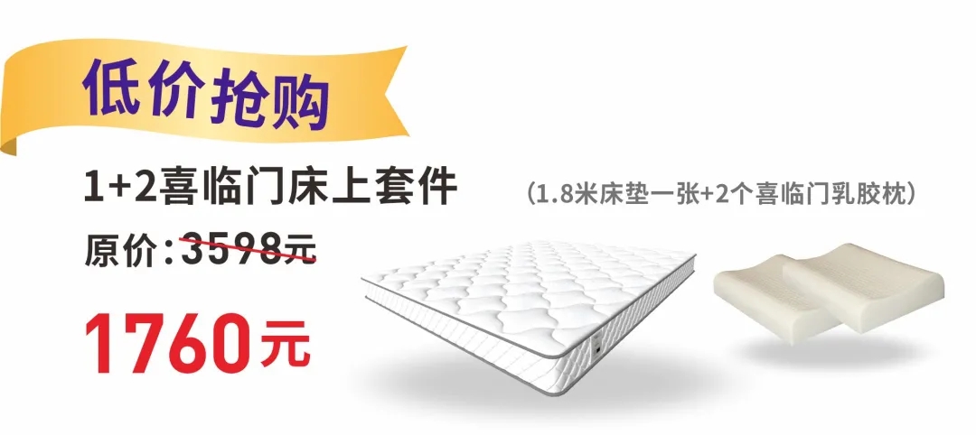 1760元直播間低價(jià)搶購(gòu)1+2喜臨門床上套件(1.8米床墊一張+2個(gè)喜臨門乳膠枕)