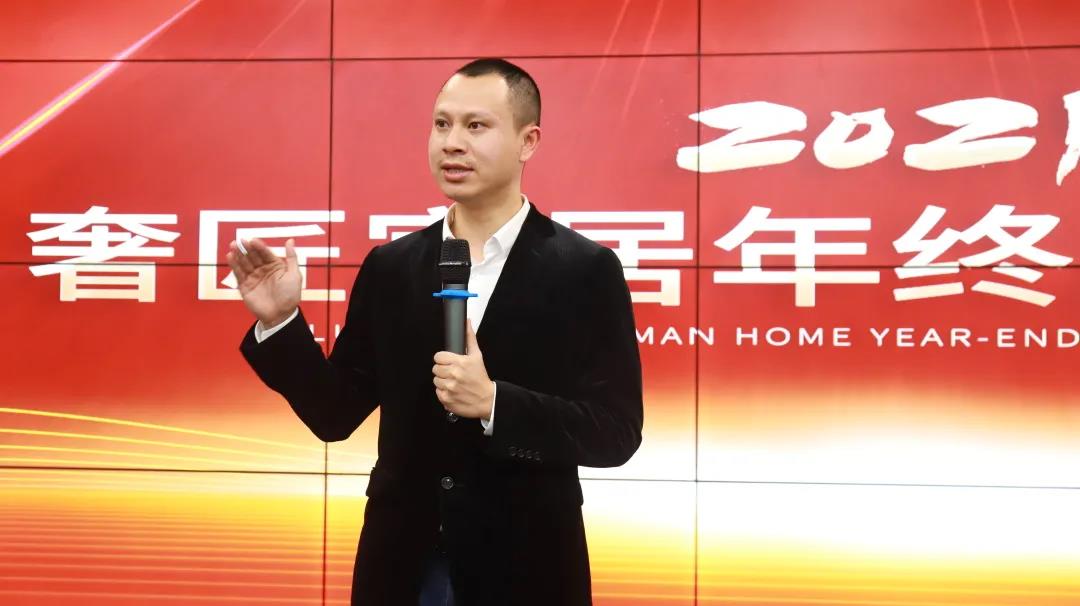 隨后,奢匠家居總經(jīng)理蔣松澤先生做了年度匯報(bào)及總結(jié)。對(duì)于2021年奢匠招商部、渠道部、建店部、直營部等部門超額完成2021年度目標(biāo),蔣總給予了高度的認(rèn)可與祝賀,并表示這是全體奢匠人共同攜手,努力奮進(jìn)的結(jié)果,是公司誠信經(jīng)營,突破創(chuàng)新的成果。