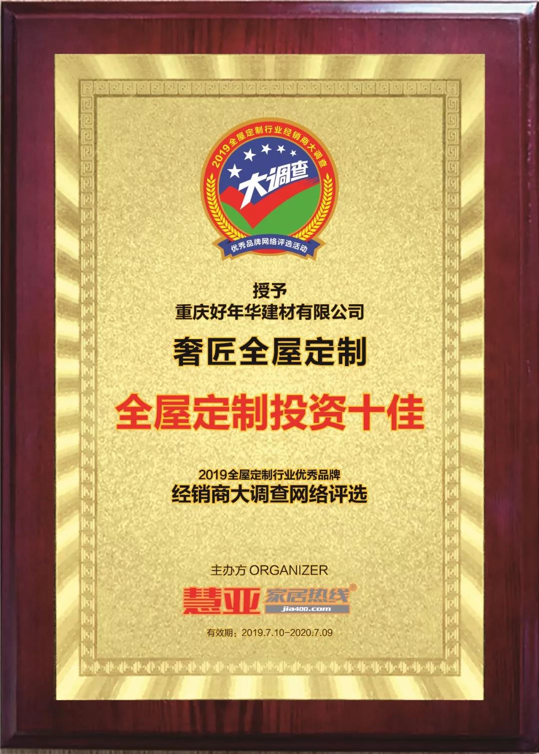 奢匠以其追求卓越的產(chǎn)品質量、遵循原創(chuàng)的非凡設計、特有的企業(yè)文化以及強大的品牌實力榮獲“全屋定制投資十佳”品牌。
